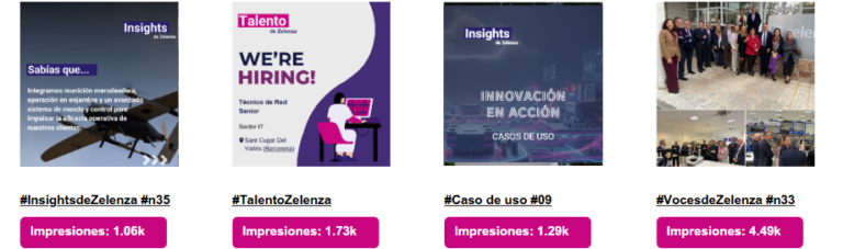 Los contenidos corporativos han seguido siendo un pilar esencial de nuestra estrategia digital, consolidando la audiencia a través de las secciones Insights, Talento y Voces de Zelenza. El contenido relacionado con Defensa, Redes Telco y la visita de la AED a la sede de Getafe volvió a destacar por su alta visibilidad, situándose entre las publicaciones más relevantes.